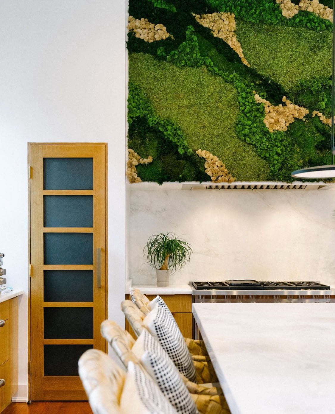 Moss walls are the perfect impact piece without the maitenance. Without the worry of "if you have enough light". Moss walls are the perfect maitenance and worry free piece. We can custome create various shapes, textures and even incorporate your logs.